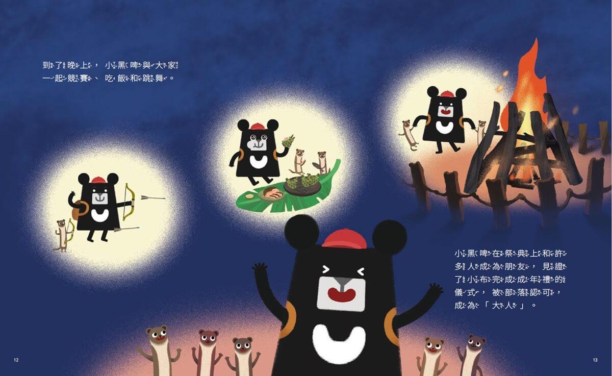 小黑啤在祭典上和????許多人成為朋友,見證了小布完成成年禮的儀式,被部落認可,成為「大人」。