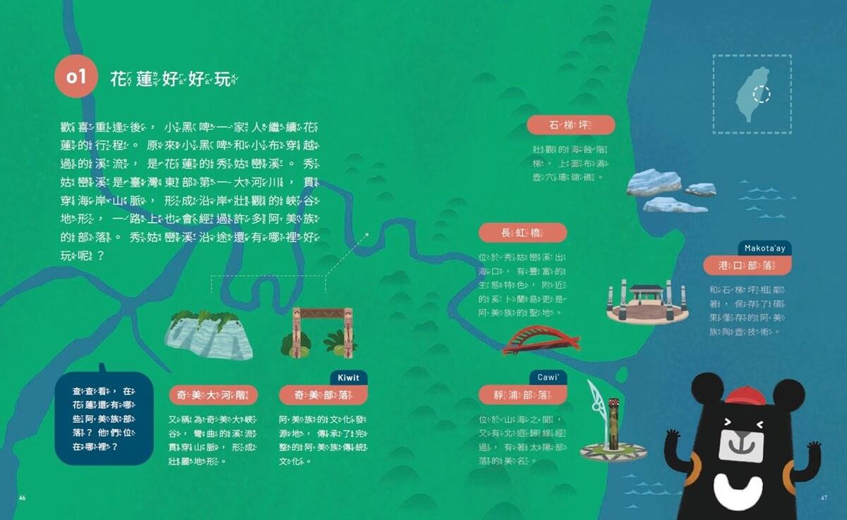 (2)故事篇:精采故事引領孩子深入各地,搭配小黑啤的冒險故事,寓教於樂,讓孩子在冒險中了解家鄉的迷人魅力。
