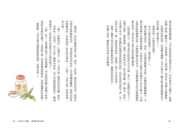 書中十餘幅插圖以淡雅筆調,捕捉下玉里的風景與食物,讓這場旅居的生活,有了更溫柔的色彩。這不僅是一本飲食散文,更是一趟心靈旅程。如果你也嚮往慢下來的日子,渴望在快節奏的生活裡尋找心靈的出口,且跟著譚玉芝的腳步,走進玉里,在風景與味道之間,尋找屬於自己的靜謐時光。