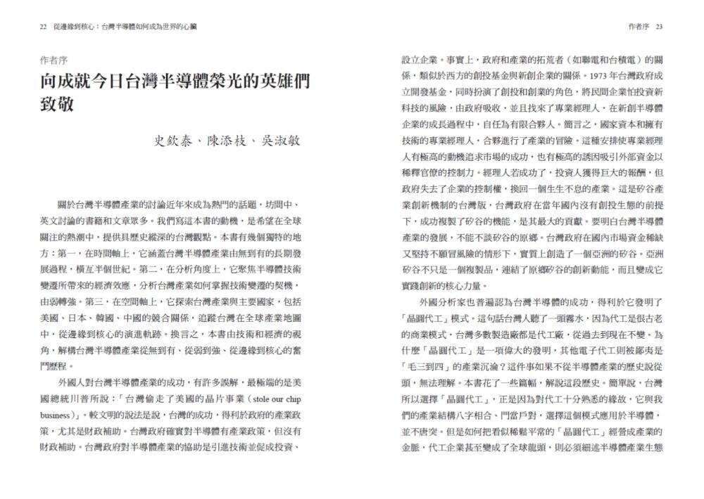 作者序 向成就今日台灣半導體榮光的英雄們 致敬 史欽泰、陳添枝、吳淑敏