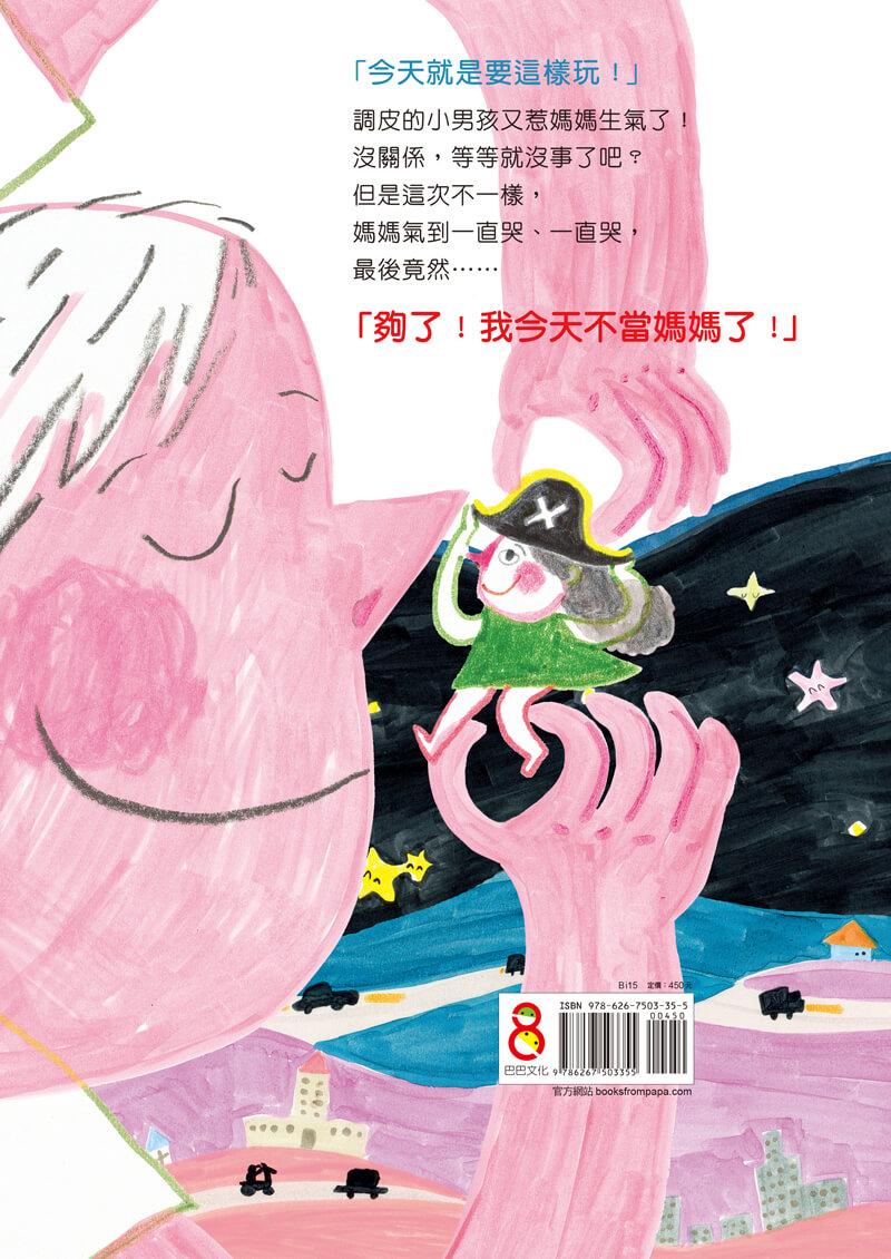 貓魚用奔放跳躍的線條和色彩,畫出媽媽們翻天覆地的內心劇場:時而穩重,時而胡鬧;時而開懷大笑,時而眼淚往肚裡吞;時而滿腔熱血,時而「不當媽媽了」!而有時疲累的媽媽,只想縮小縮小直到消失不見,這時,又是孩子們的笑容與純真的關心,讓媽媽們一下子充飽電。