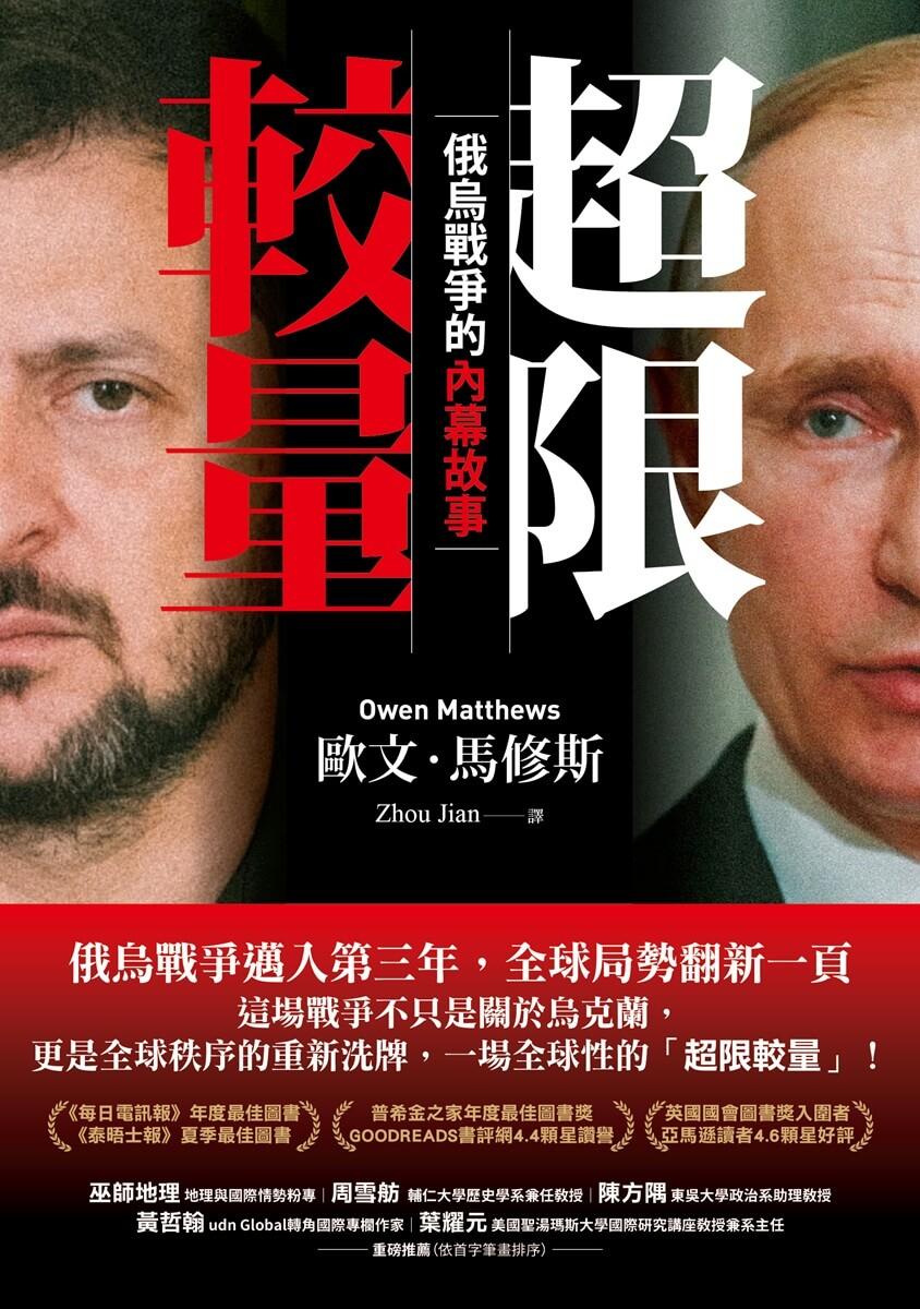 知名記者歐文·馬修斯(Owen Matthews),曾深耕俄羅斯、烏克蘭、中東與歐洲政治長達數十年,以其深入調查與第一手資料,全面揭露這場戰爭背後的權謀與角力。《超限較量:俄烏戰爭的內幕故事》不僅是一部詳盡的戰爭紀實,更是一部透視21世紀國際權力競爭的剖析報告,讓讀者理解這場衝突如何改變全球格局。