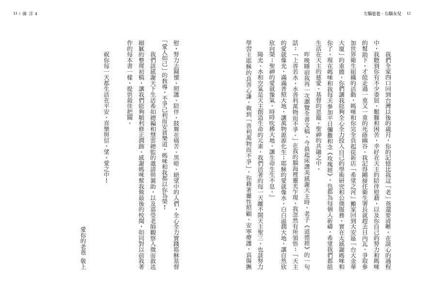 本書不僅是父女之間的談心,更是關於理想、責任與成長的對話,也引領反思人生與社會的重要課題。相信讀者能從此書的思辨過程,探尋生命的重要意義,衷心推薦。