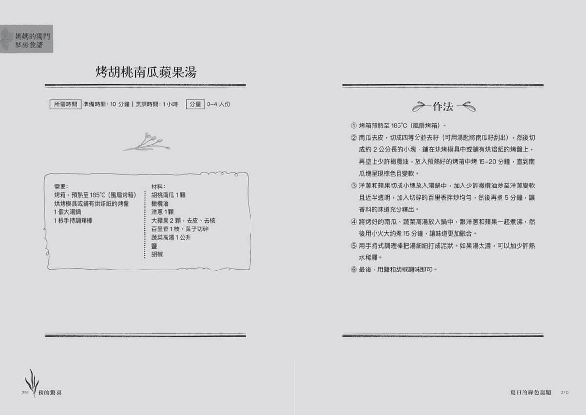書中還有好多彩蛋等你尋找,快打開本書,進入綠色王國的奇妙世界吧!而我呢,已迫不及待的想將書中的《綠色王國食譜》一一試著做來嚐嚐了。