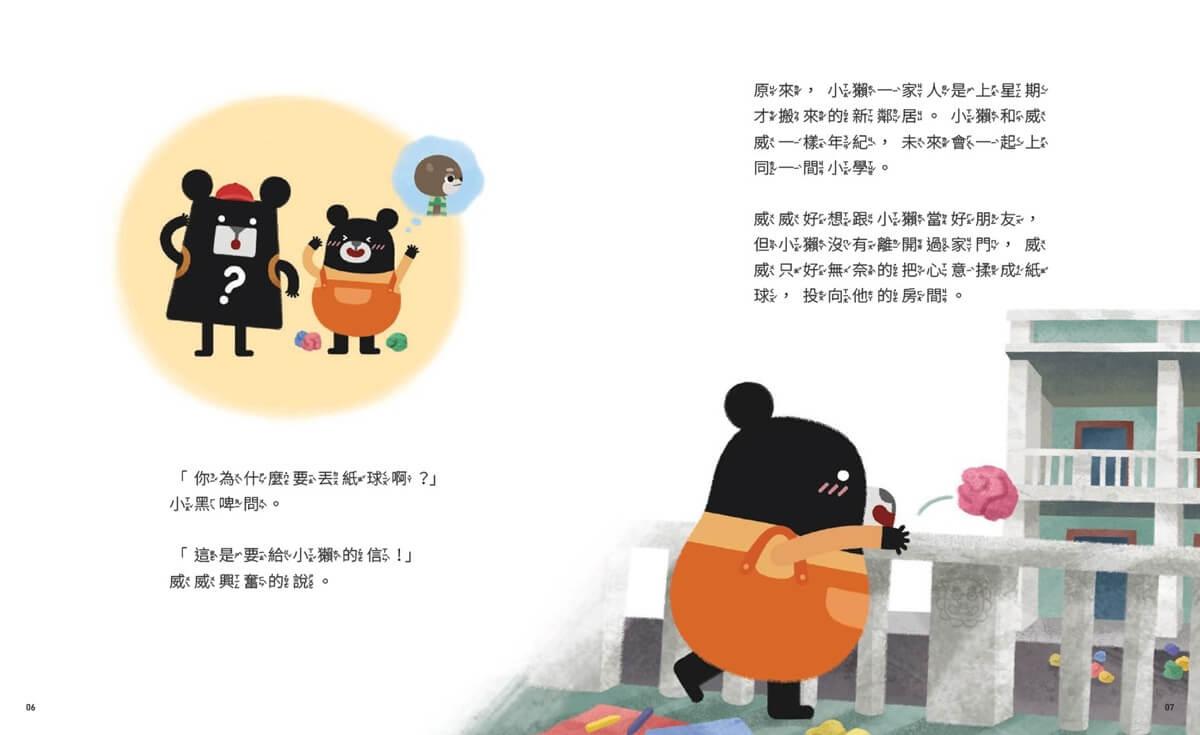 威威好想跟小獺當好朋友,但小獺沒有離開過家門,威威只好無奈的把心意揉成紙球,投向他的房間。