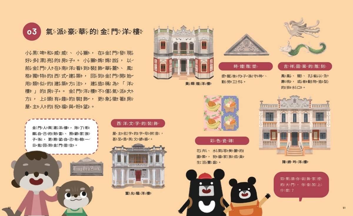 讓我們一起來探索金門的特色,認識金門過去的戰略要地和閩南建築。此外,來發掘金門洋樓的歷史與特色,看看這些融合中西風格的建築如何成為金門的文化象徵。接著,來探索金門的守護神風獅爺,並前往世界各地的傳統住家,看看適應當地氣候環境的生活空間。最後,一起來學習用開放的心認識新環境,讓每一次的探索都變得更有趣!