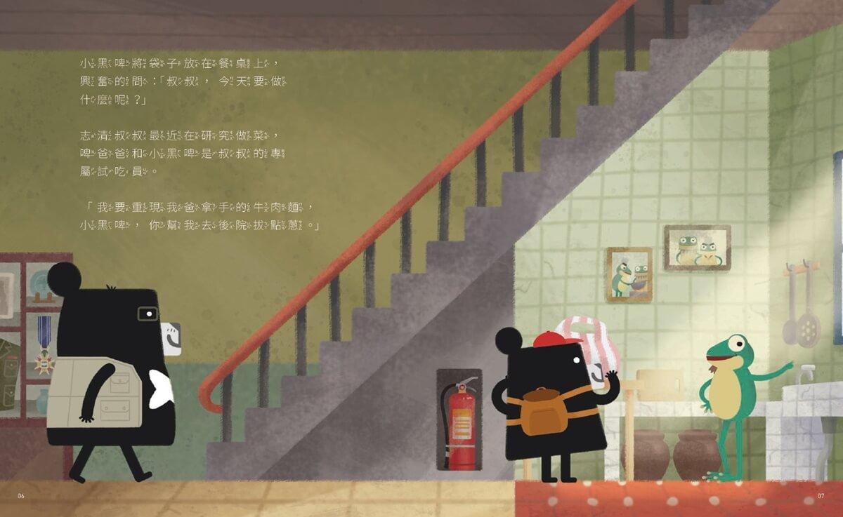 週末,小黑啤跟著啤爸爸一起去拜訪志清叔叔。他們來到和高樓大廈截然不同的臺北眷村,志清叔叔最近在研究做菜。小黑啤一邊幫忙洗菜和玩毽子,一邊聽啤爸爸他們聊起童年趣事。沒想到,小黑啤竟然發現房子裡有一個小閣樓,廚房也發生突如其來的失火危機!小閣樓裡藏著什麼祕密?他們會如何解除失火危機呢?