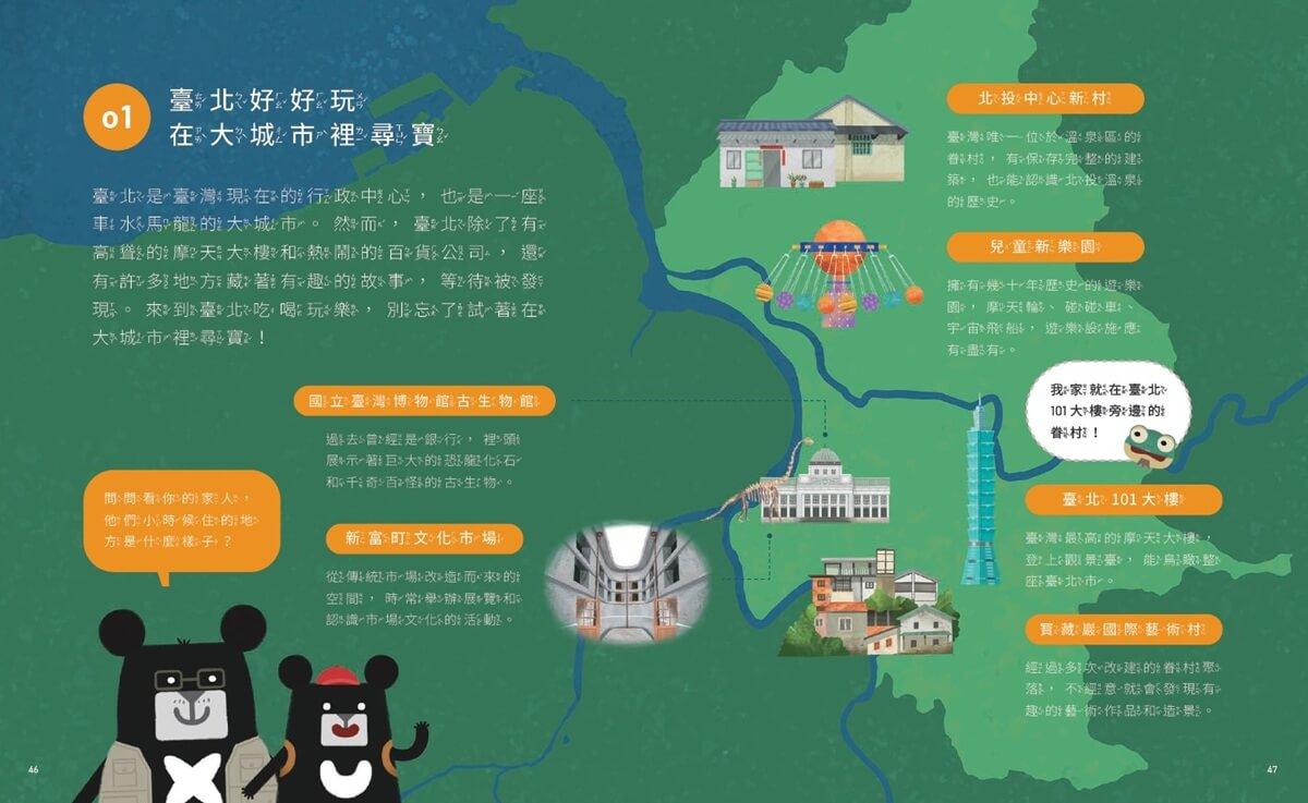 臺北是臺灣現在的行政中心,也是一座車水馬龍的大城市。然而,臺北除了高聳的摩天大樓,和熱鬧的百貨公司,還有許多地方藏著有趣的故事,等待被發現。來到臺北吃喝玩樂,別忘了試著在大城市裡尋寶!