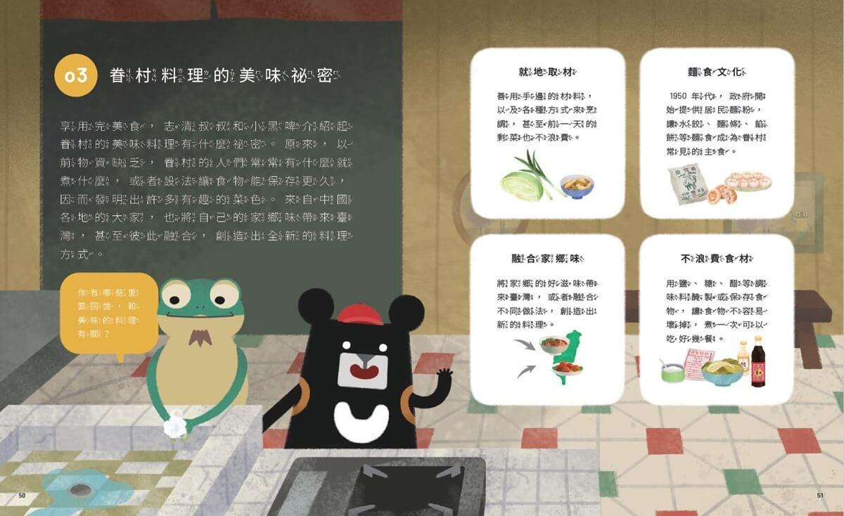 讓我們來發現臺北市更多有趣的地方,探索這座城市豐富的歷史與文化。從眷村來了解當年來臺軍人和家屬建立家園的故事,一起發現眷村料理的美味祕密和家鄉味。此外,也來認識世界各地的傳統玩具,探索各種創意玩法!最後,跟著小黑啤學習觀察環境中的潛在危險,學會避免意外發生的方法,一起打造更安全的生活。