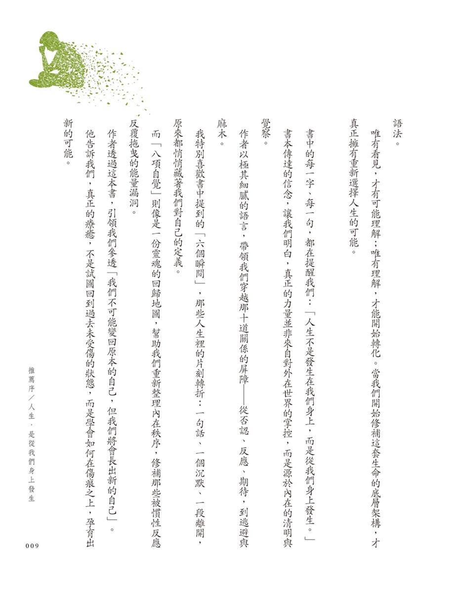 作者透過這本書,引領我們參透「我們不可能變回原本的自己,但我們將會長出新的自己」。