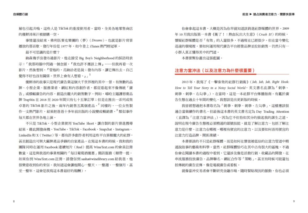 范納洽以他多年在商業與行銷上的經驗,告訴你如何善用社群媒體TikTok化的趨勢。透過本書,無論是大企業、本地商家、B2B企業、DTC公司、新創事業、家族企業、網紅與內容創作者等,都可以理解