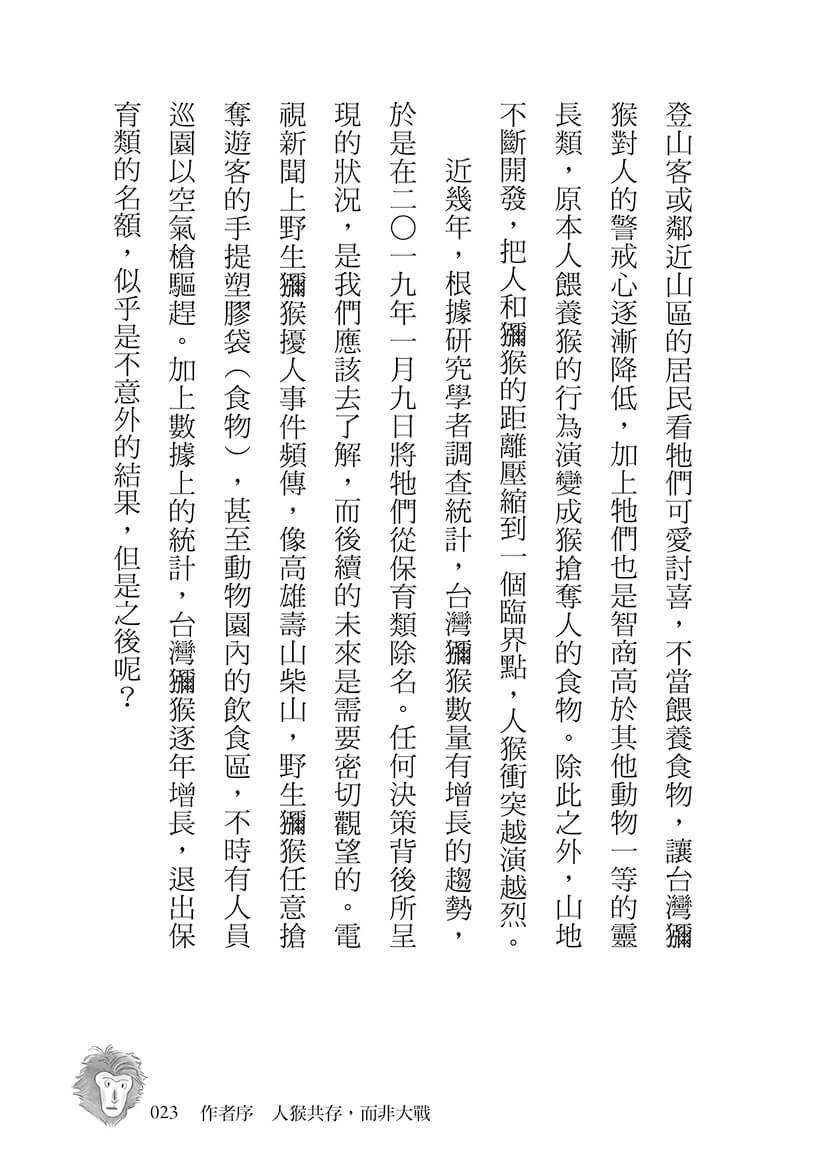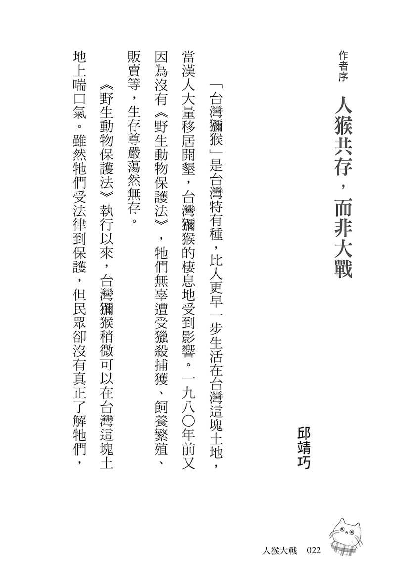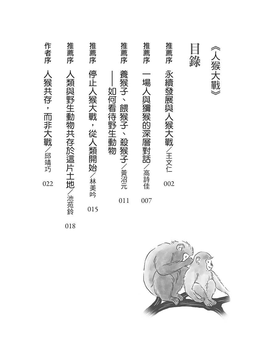 當靖巧完稿,傳來稿件請我協助的時候,一開啟檔案「人猴大戰」四字跳進我的視野,對於一個在長期推廣台灣獼猴科普教育的我來說,這四個字不就是我們一直想畫下句號,卻好似永不止息的現況嗎?