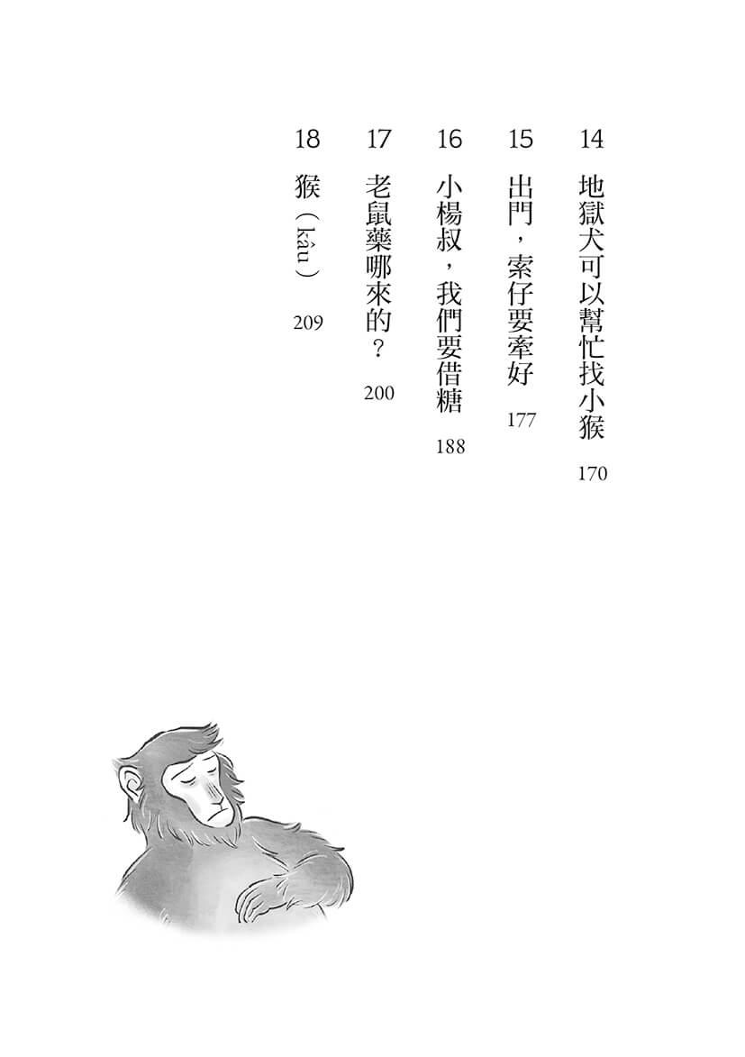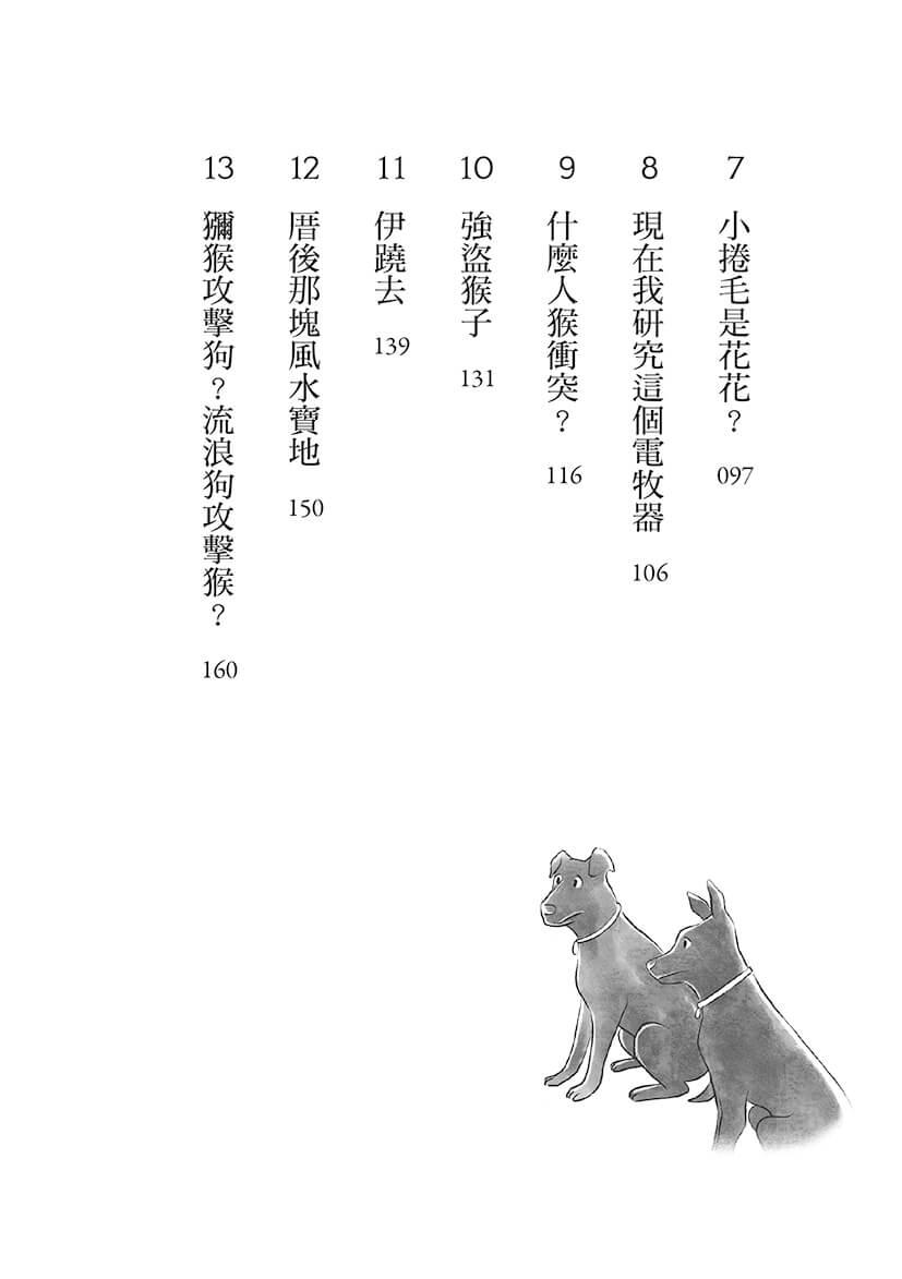 這本《人猴大戰》寫的不只有獼猴,也有流浪的貓狗及其照護問題。諷刺的是,因為有人施放老鼠藥,「害死了獼猴和狗,然後留下來的人只會繼續對立,過不了多久,可能也都忘了,換了一批人,又重新發生一樣的事。」人們的行為到頭來成了一切罪惡的源頭。