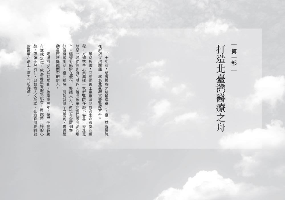 二○二五年五月臺北慈濟醫院啟業正滿二十年,經過二十年時間的淬鍊,臺北慈濟醫院已是一所全方位承擔醫療重任的醫學中心了。