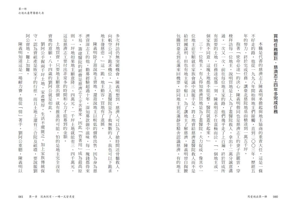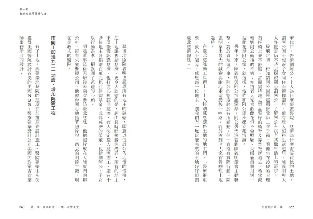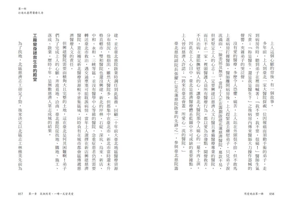 從義診所到醫學中心,從工廠到生命殿堂,從志工的雙腳到病人的希望。本書記錄臺北慈濟醫院從無到有的歷程:奔走覓地、隔震設計、社區互信、災難應對,一群人將醫療人文深植於磚瓦之間,也將慈濟的精神扎根在都市的心臟。