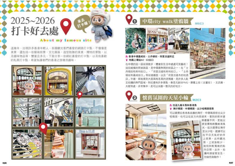 2025夏~2026版除了更新店鋪資訊,還加入了這一兩年來,香港年輕人、各國觀光客們喜愛打卡的點,包括一些藝術街景、文化展區、造型取勝的美食、獨特的景點,以及潮流趣味物品等,讓香港旅行變得更生動多元。書中介紹的餐廳、購物商場和遊樂區,有些是大排長龍不可不去的名店(很多旅遊書都有寫了),但有些則是我比較偏愛的特色美食、小店,也許並非盡如每個人的意,但都頗有人情味,讓你能體驗到特殊的香港庶民風情。香港距台灣僅2小時左右的飛機航程,就如同台北到高雄搭乘高鐵的時間。趕緊安排幾天假期,和三五好友、情侶、家人,再次展開一場美妙的香港之旅吧!