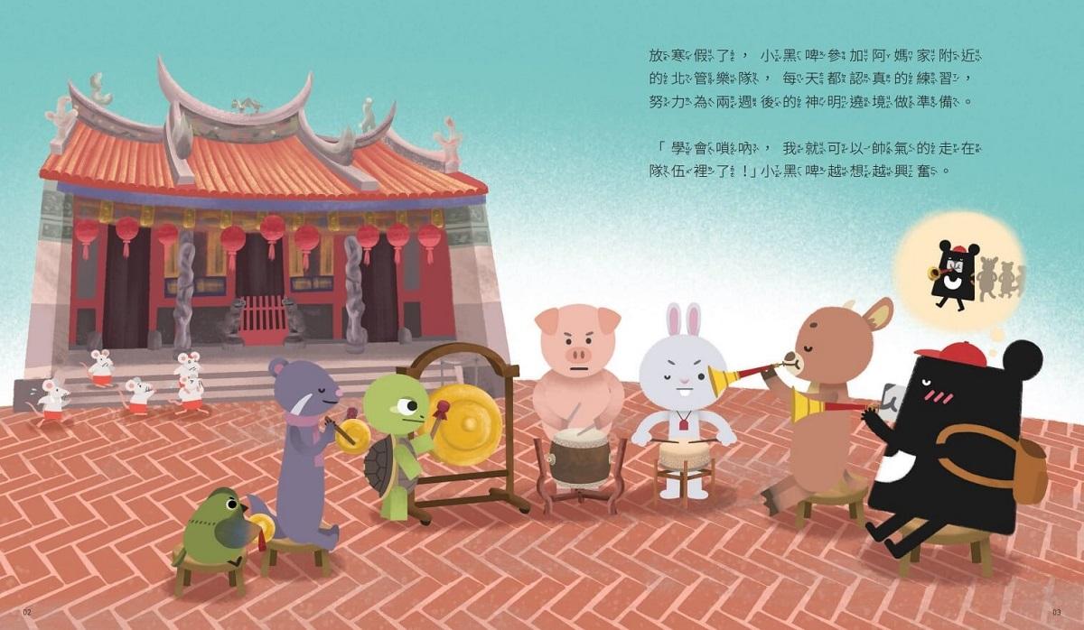 放寒假了,小黑啤參加阿媽家附近的北管樂隊,每天都認真的練習,努力為兩週後的神明遶境做準備。