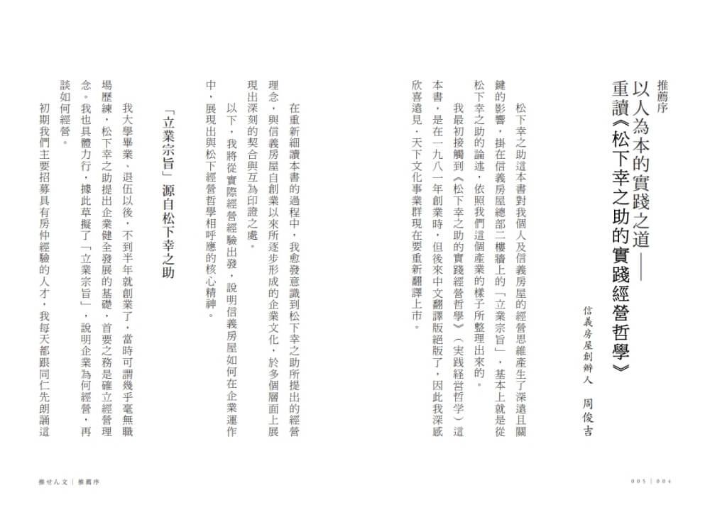 本書為松下幸之助在其六十多年事業經驗中,淬煉而生的實踐經營哲學:
