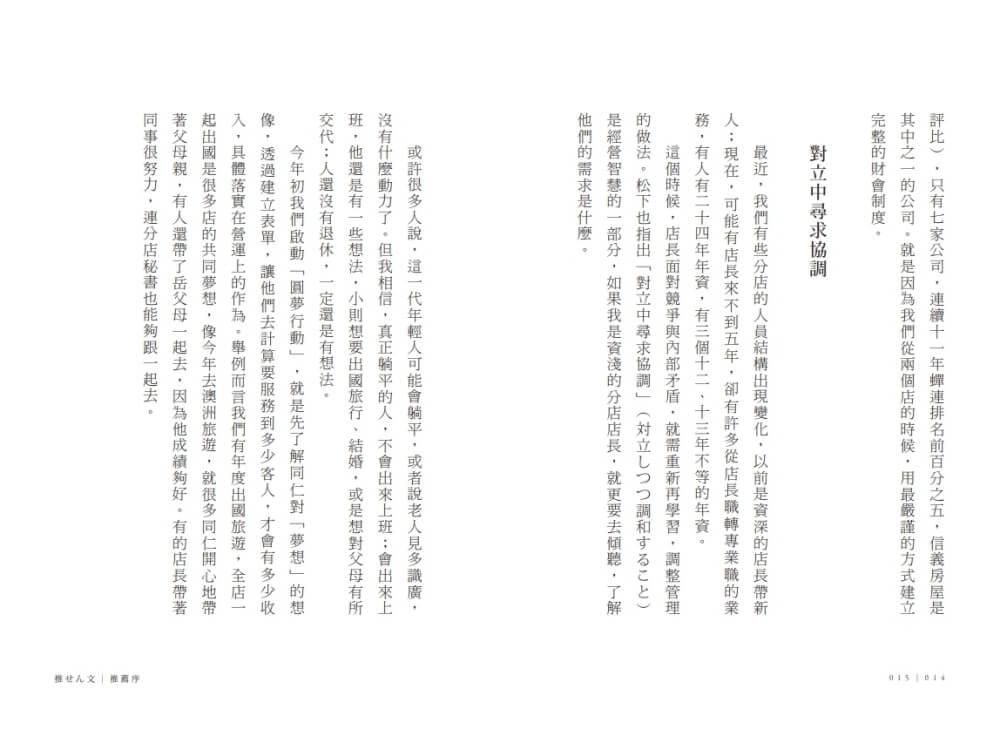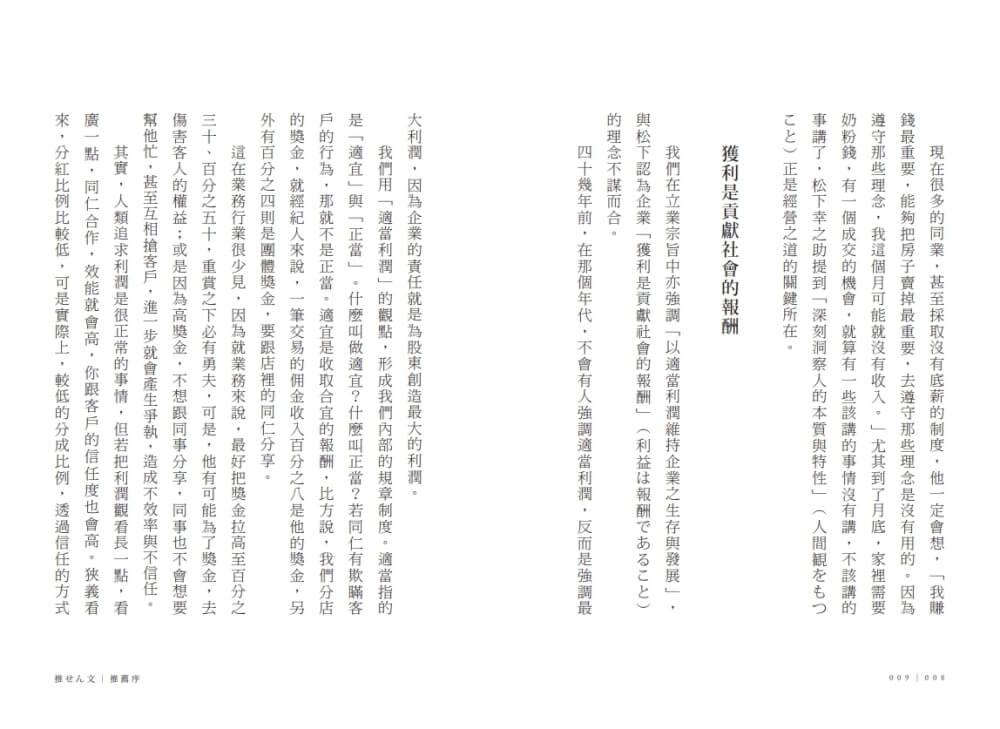 本書彙集了我經由這六十年來的事業經驗,所建立、實踐關於經營的基本想法,也就是企業的經營理念、經營哲學。提到經營理念、經營哲學,或許稍嫌嚴肅,但本書並非學術研究的成果報告,也不是經過系統性整理的論述,完全是我在實務中累積的經驗。我深信,若能秉持這些基本理念來經營,必能引領企業走向成功的道路。