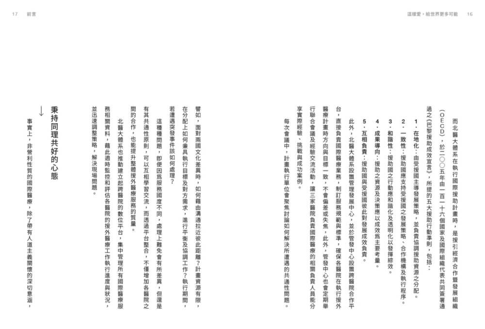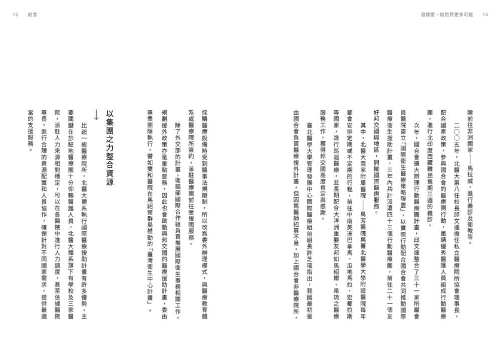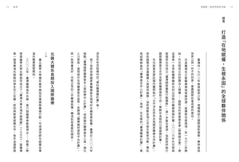 而本書所探討的主題,則是彙整北醫大體系近二十年來,協助政府執行國際醫療服務計畫所累積的經驗與學習。