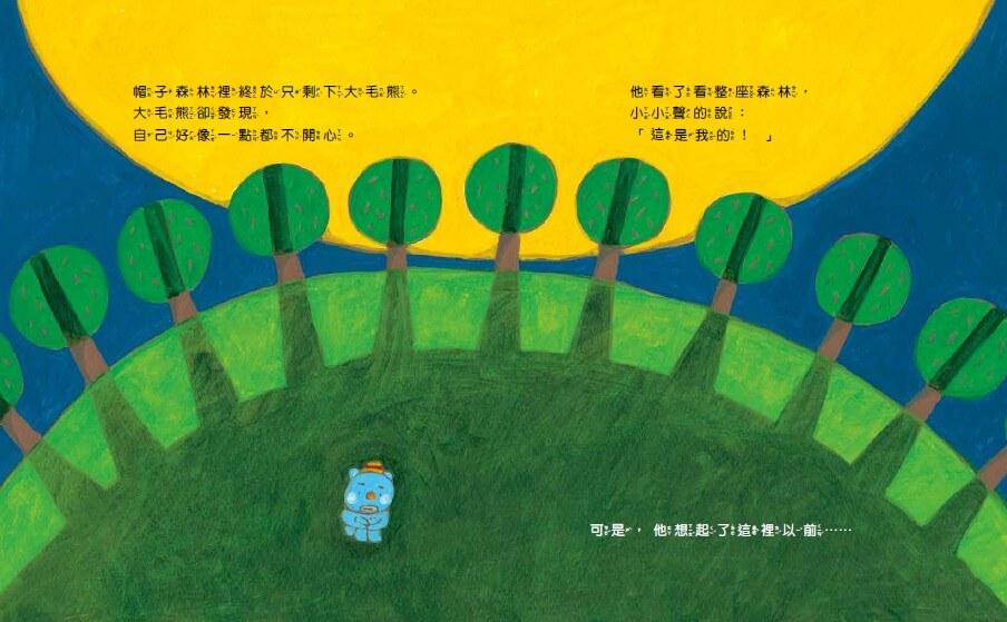 帽子森林裡,有一隻大毛熊和很多動物朋友。