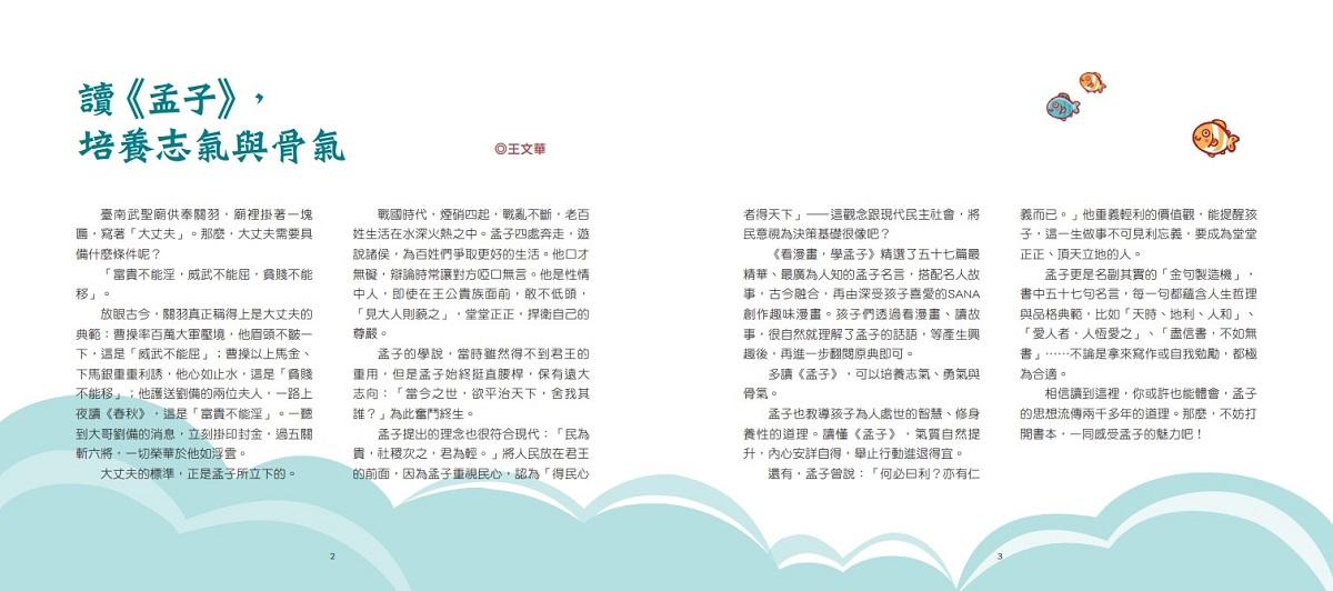相信讀到這裡,你或許也能體會,孟子的思想流傳兩千多年的道理。那麼,不妨打開書本,一同感受孟子的魅力吧!