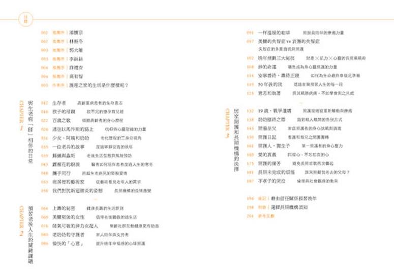 本書三個單元:與生老病「師」相伴的日常、預習老後人生的關鍵課題、居家照護與長照機構的抉擇。提及目前及未來「長照」所面臨的現實面,包含:醫療照護、患者身心、照護者及為人子女的心情與困境,進而促使大家思考未來個體、父母年老的議題,或更具體的規章制度,非常有助益。