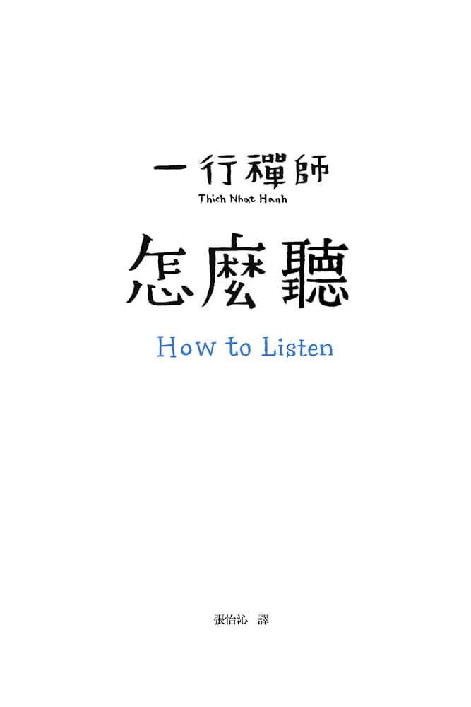 在《怎麼聽》,一行禪師展示深度的聆聽是良好溝通的基石。但或許更關鍵的是,聆聽是修行的核心,是強化正念、專注、洞見、慈悲這些能力不可或缺的基本元素。以平等面對生命的態度去學習聆聽,得以發現我們與萬事萬物都有著深刻的連結。知曉我們並非單獨存在的個體,有了這一層的理解,我們聆聽的能力將更上一層樓。