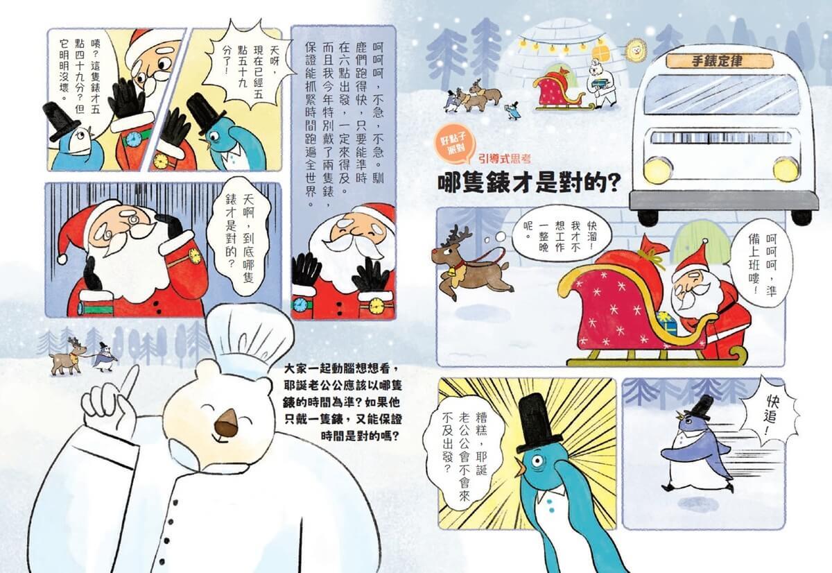 這集每篇童話故事後,照例附有延伸的漫畫小單元「好點子派對」,探討每篇故事所蘊含的情境元素。希望讀者能在大白熊和小企鵝逗趣的對話中,獲得新的眼光、心的亮光。