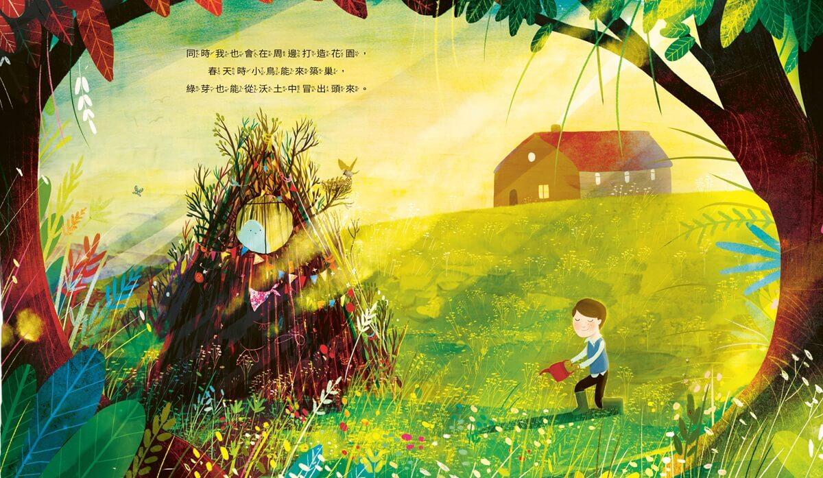 男孩知道,總有一天憂傷會走出庇護小屋,他們就能一起去發掘世界的美麗。