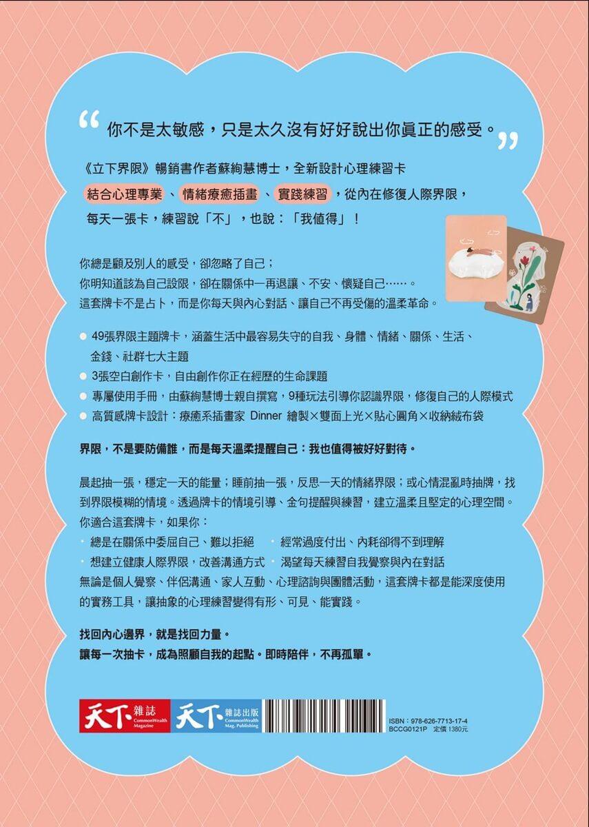•專屬使用手冊,由蘇絢慧博士親自撰寫,9種玩法引導你認識界限,修復自己的人際模式