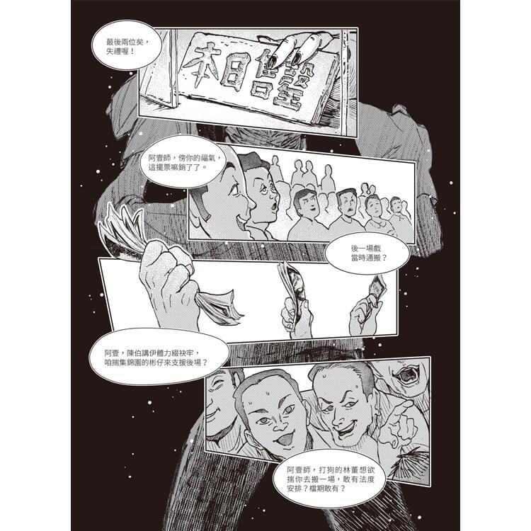 最後特別感謝我重要的兩位夥伴——漫畫家巫魚王老師,還有大寬文化的冠伃。為了還原阿壹的百年一夢,巫魚王老師在田調跟創作投入大量心力,將劇本視覺化,傳遞更深更遠的感動;因為冠伃的伯樂慧眼和不懈努力,這個故事才沒有被放棄,並在企劃階段就獲得文化部的支持。為了忠實呈現時代氛圍的轉換,還有職人精神的口氣,我們在台文跟華文的使用切換上做了諸多討論,終於決定跟隨著角色的視角走,完成大家所看到的這個版本。也許仍有諸多不足之處,但我們深知這門藝術的博大精深,只能謙卑的站在巨人的肩膀上,試圖傳遞我們的理解和真心。