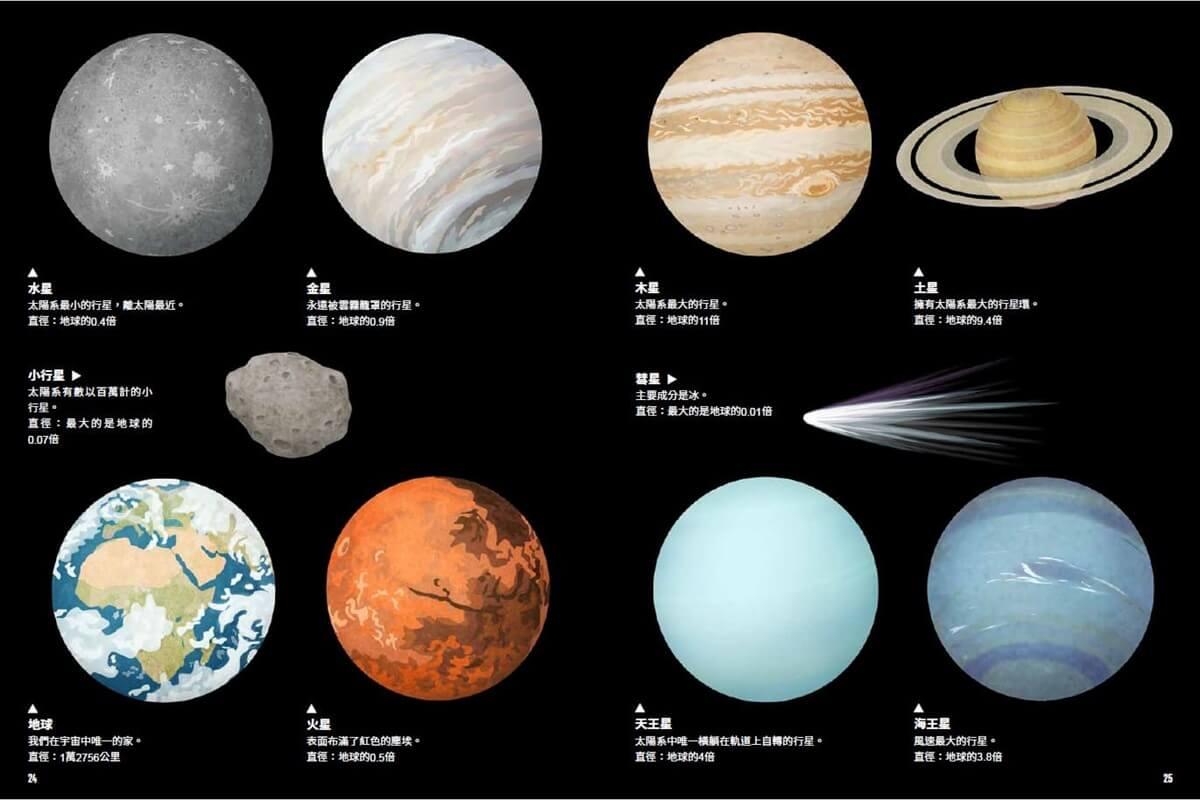 這本圖文並茂的太空小百科,從宇宙的起源,到各種天體和太空探索計畫,以一目了然的方式呈現,讓讀者對每個主題得到最鮮明的認識。