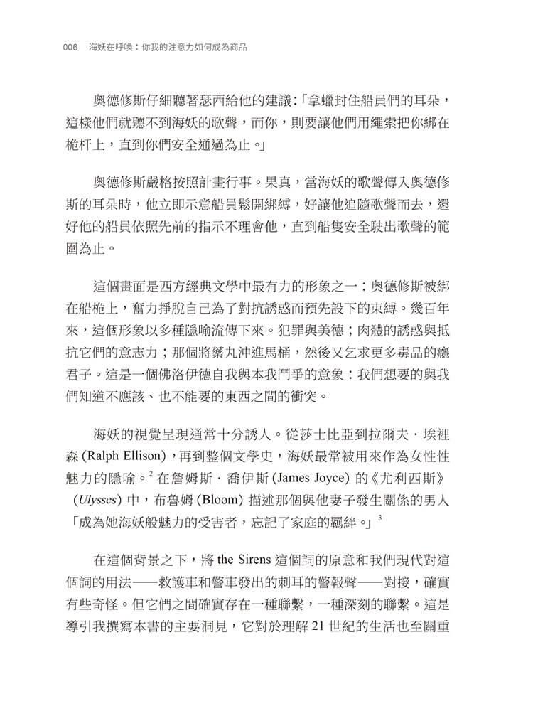 當我們打開手機、登入社群平台、觀看新聞推播時,或許已習以為常地認為這是自由意志的展現。然而,《海妖在呼喚:你我的注意力如何成為商品》卻指出,我們所謂的「選擇」,其實是在一套設計精密的注意力系統中被預設、引導甚至操控的結果。
