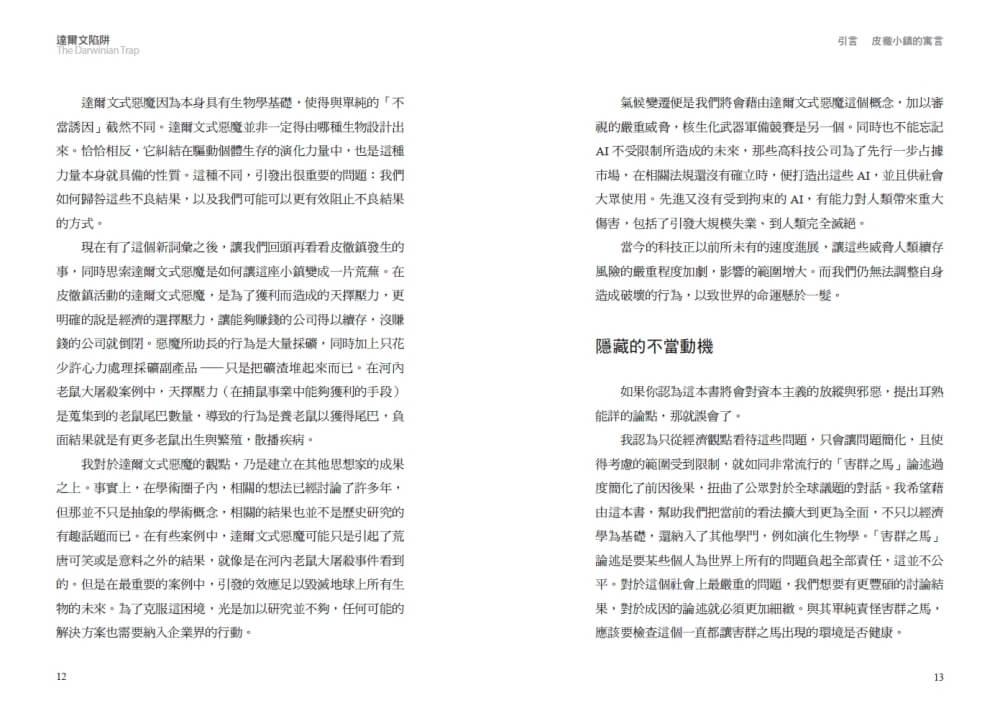 為了能夠創造出這樣的現實,第一步就是要徹底瞭解想要解決的那些問題到底有多麼嚴重。我寫這本書,便是為了幫助大家瞭解,這種有害的演化機制一如我所認為,是許多大大小小社會問題的根源。在這本書中,我將為你全面解說達爾文式惡魔的運作方式,以及在歷史中產生的影響。