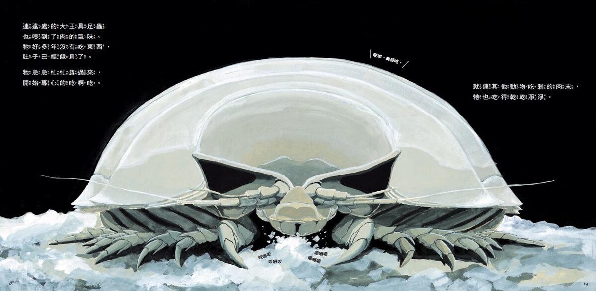 河崎俊一的插畫深具生態插畫的精確以及寫實功力,他還為這些饑腸轆轆的深海生物賦予了幽默和擬人的表情,為這本科學繪本帶來歡樂和希望。