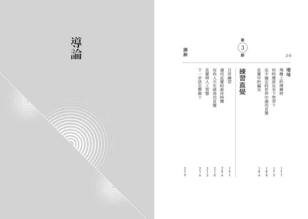 本書的目標並不是做為深入探究直覺的教科書,而是要將與直覺有關的科學研究,歸納為簡單、實用、易於遵循的法則,幫助人們提升決策能力。我汲取自己在實驗室研究獲得的知識,並且參考多位研究者在其他學科及相關主題的研究成果,希望能幫助讀者了解,何時可以安全的使用直覺。