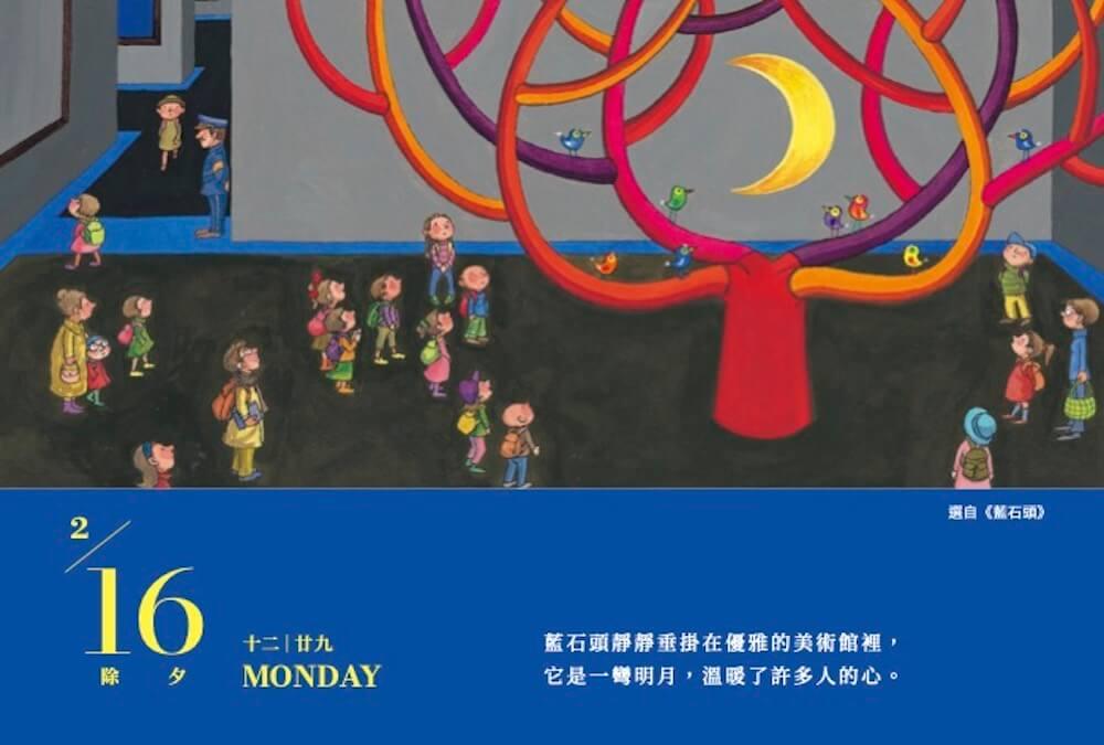 每日日曆頁面中,除了幾米畫作與文字之外,日期的資訊以簡約的設計呈現,數字代表的是陽曆日期,以漢字代表陰曆日期,輕鬆掌握日期、星期、節日、節氣與陰曆。