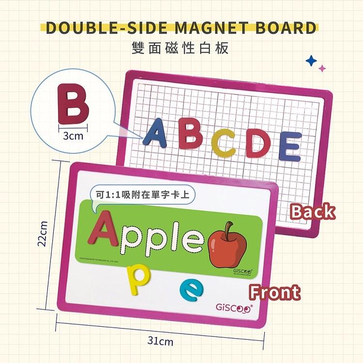 字母背面選用滿版軟磁鐵設計,吸附力更強;搭配GiSCOO訂製雙面強磁力白板,質感滿分。