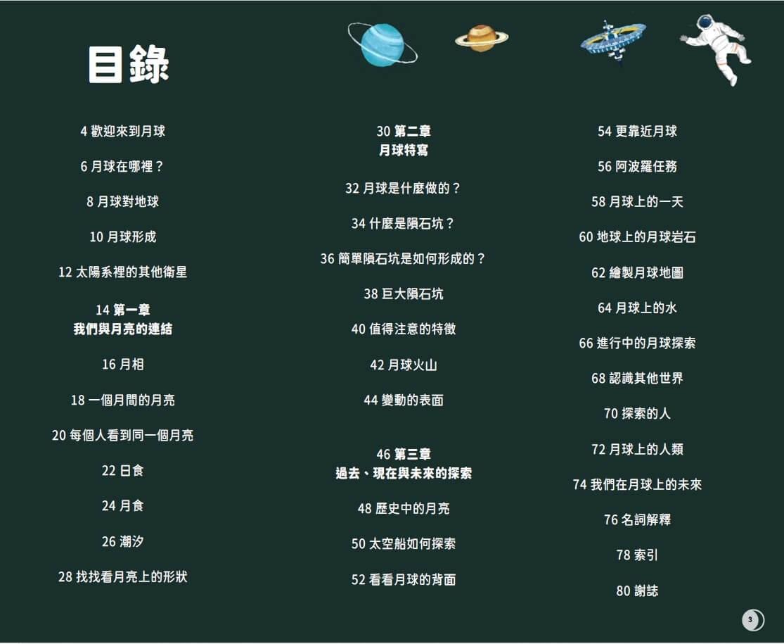 這本書中,我們會探索人類與這個驚奇天體間的關係,一窺月球探索,並夢想人類未來有一天能夠重返月球。