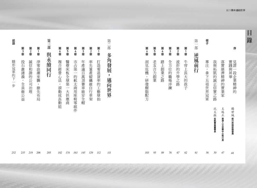 這本書,不只是拓凱的歷史,更是台灣的故事,是一位慈濟志工的心路歷程,是一位企業家的社會責任實踐。——王端正,慈濟人文志業中心 執行長