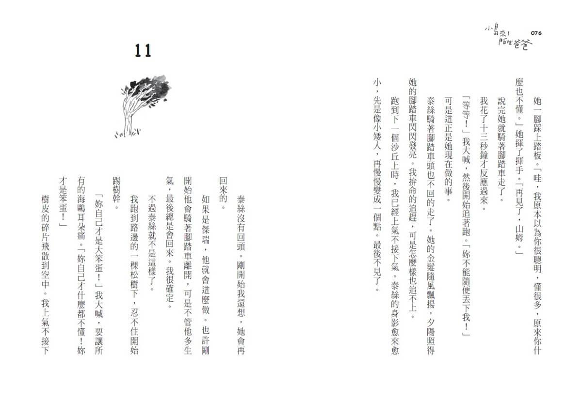 「等等!」我大喊,然後開始追著跑。「妳不能隨便丟下我!」