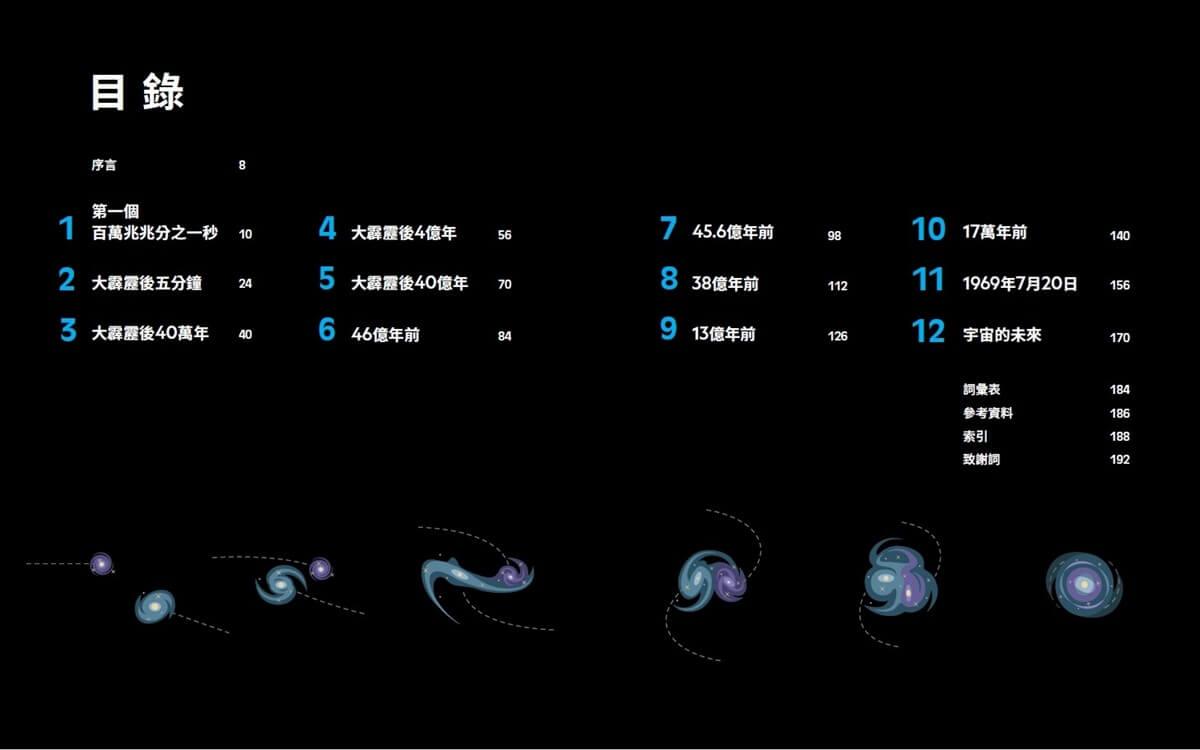 至於此時此刻,你在閱讀本書,而我深感榮幸,要和大家分享宇宙的故事。也由於歷來科學家共同努力解釋宇宙,我才能在這裡說書,從宇宙誕生之初說到現今,甚至遙遠的未來。