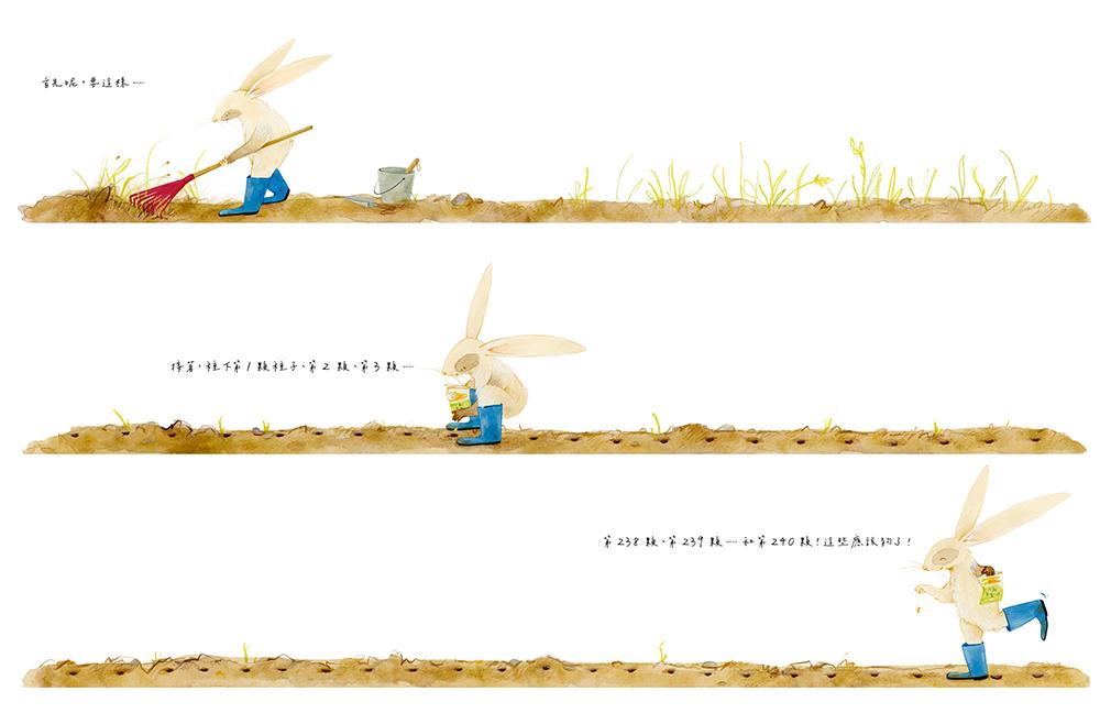 兔子先生每天都為種子們澆水,和他們說說話、唱唱歌……