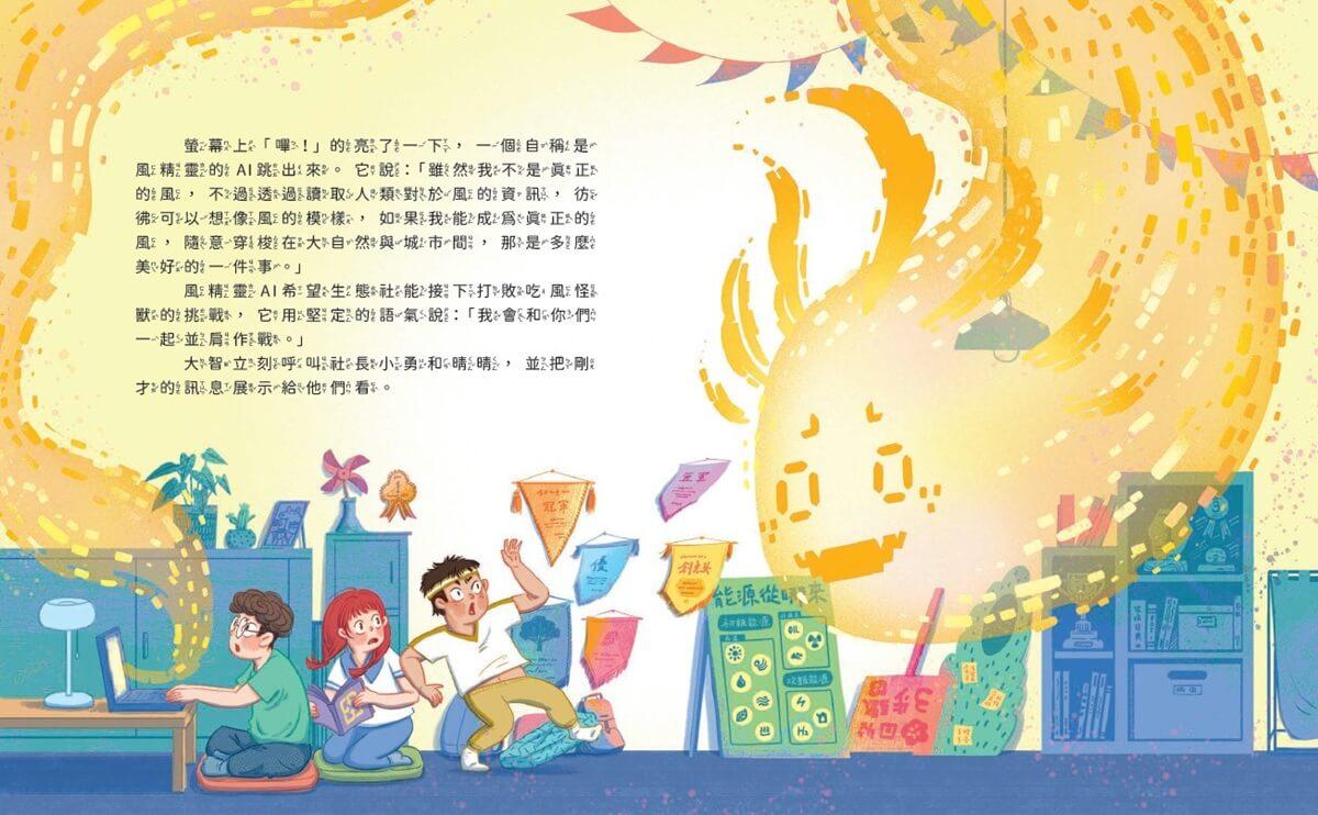 幸好,生態社的大智、晴晴和小勇挺身而出,他們意外的被吸進電腦世界,與風精靈AI並肩作戰,為打擊吃風怪獸模擬各種情境訓練、調整策略,在過程中,他們學會彼此信任、發揮團隊合作的力量,逐步累積迎戰困難的實力,向更卓越的表現邁進。