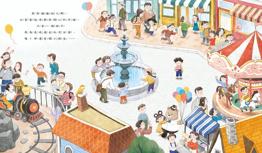 在生活中,當我們在路上發現與家人走散的兒童時,兒童太過恐懼,反應可能如書中拿著棉花糖的小朋友,定格般不知所措,直到旁人詢問,才轉有反應開始哭泣。