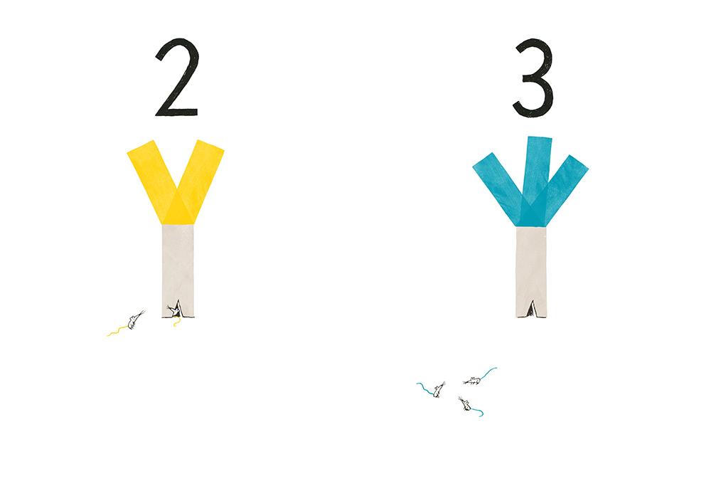 在這本書裡,數字是以森林裡的樹木出現的,比如4是一棵樹上有4個個別的分枝,也可以是一棵樹上有2+2個分枝,作家藉由這樣來告訴孩子:4可以是一個4或2+2,6可以是一個6或2+2+2或3+3……這就是質數和因數的數學概念了呀!