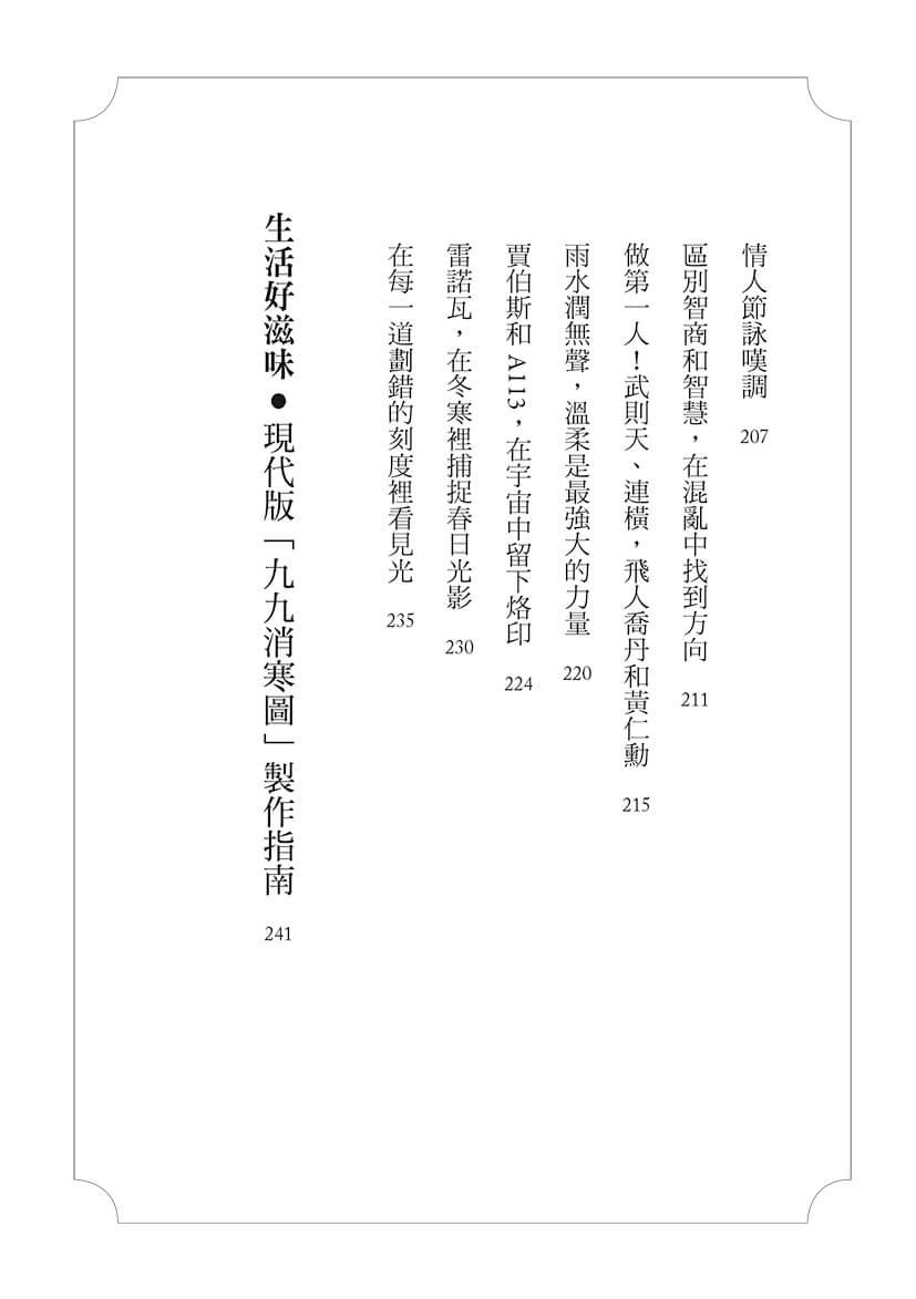 以典故取暖,不是為了說教,只是讓各種各樣新鮮的想法、奇幻的故事,陪伴我們度過一個又一個寒冷的日子、照亮一段又一段越來越漫長的黑夜。像圍坐在火爐旁,分享著喜歡的人、事、物,讓隱伏在遙遠歲月中的光和熱,穿過千年,在不斷翻新的講述裡,重新化作一盞盞小燈,看透此時此地,回望前塵,照亮未來,各種各樣的典故,好像讓每一個「這一天」,都變得不一樣了。
