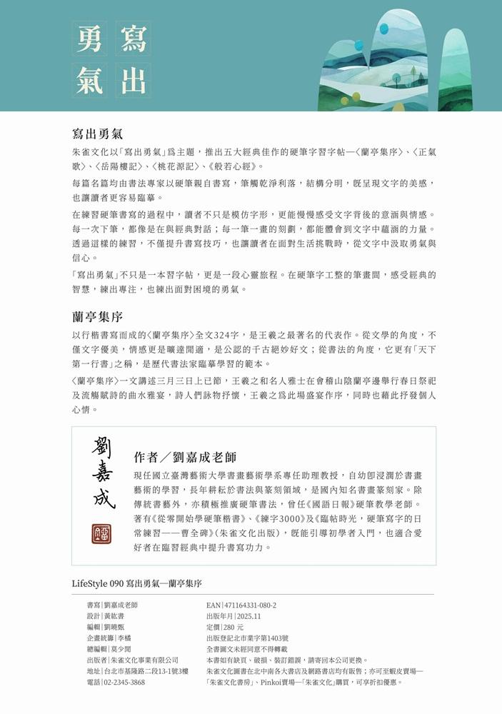包含〈蘭亭集序〉、〈正氣歌〉、〈桃花源記〉、〈岳陽樓記〉與《般若心經》,每本書皆以經典篇章為範本,引領讀者細細品味文字背後的意涵與力量。