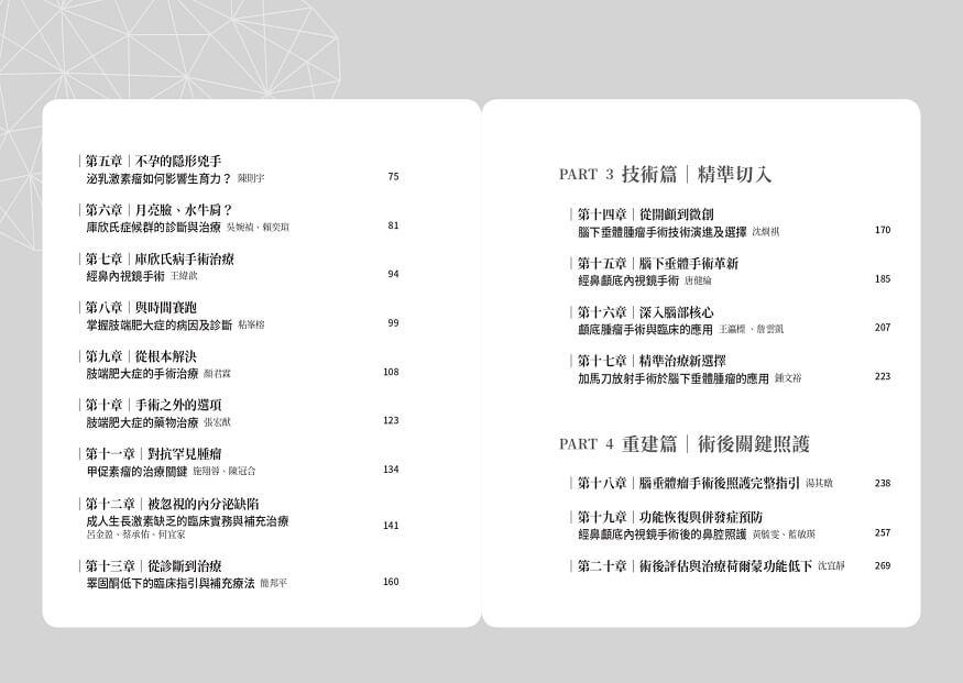 本書集結27位台大、北榮、中榮、長庚、馬偕、三總、阮綜合、雙和醫院神經外科、內分泌科與新陳代謝科權威醫師,從臨床診斷、影像判讀、手術選擇、藥物調控到術後生活照護,提供最全面、最實用的醫療指引。